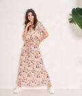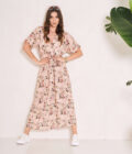 Posiada wszyty pasek na wysokości talii, dzięki czemu nadasz jej odpowiedniego kształtu. Model o luźnym kroju i uniwersalnym rozmiarze pasuje na każdą figurę i dobrze tuszuje drobne niedoskonałości sylwetki. Sukienka nadaje się do karmienia i pasuje na ciążowe brzuszki. W sukience zastosowany jest dekolt kopertowy, dzięki czemu jest idealna również dla kobiet o większym rozmiarze biustu.
